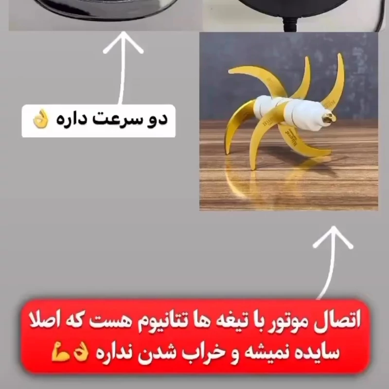 دارای تیغه 6 پر تیتانیومی با برند لیزری اصلی
