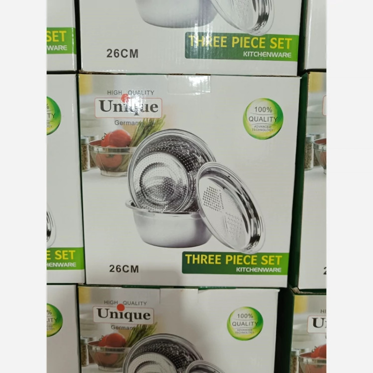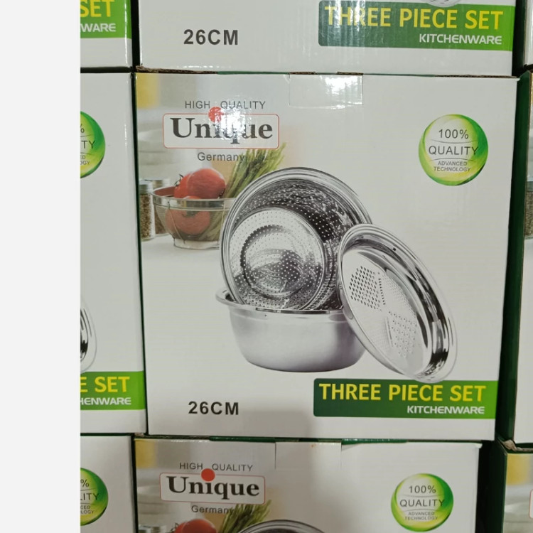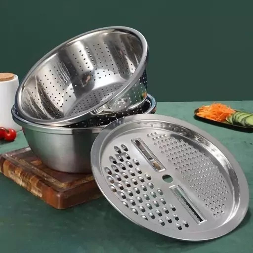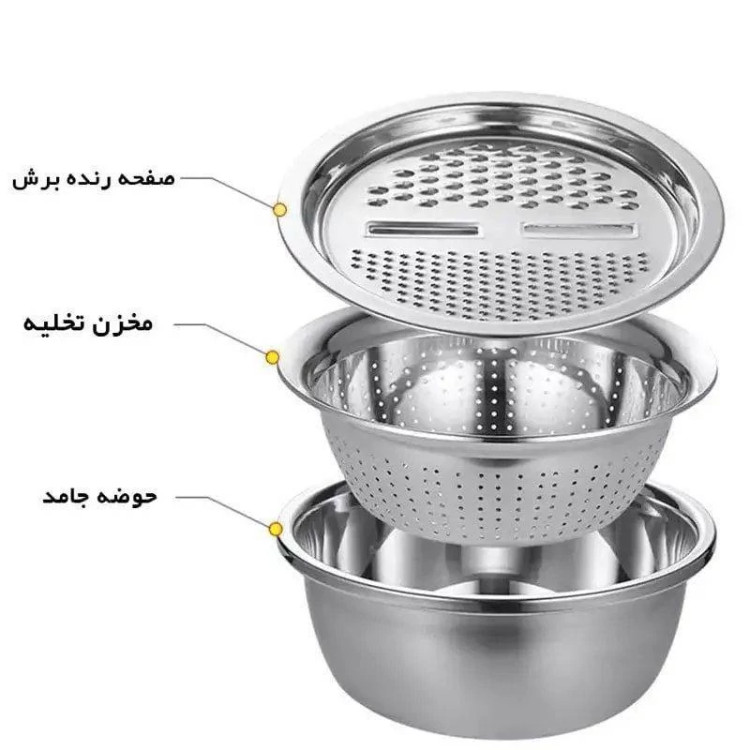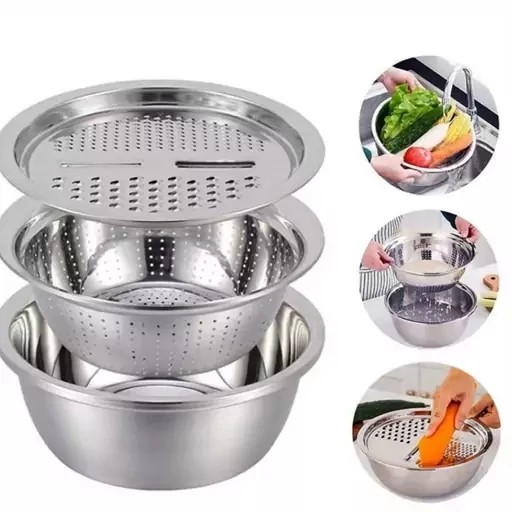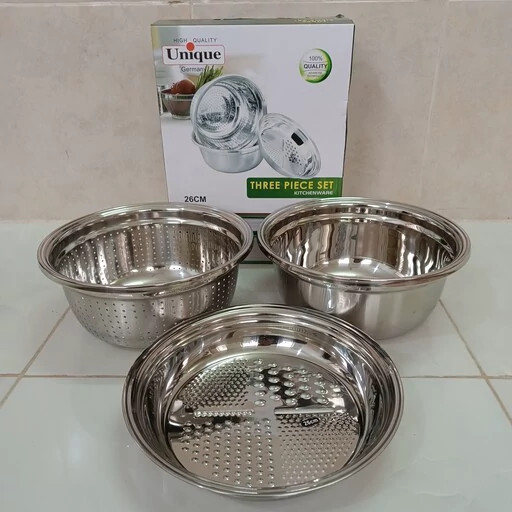 ✅️ست سه تکه آبکش، لگن و رنده استیل یونیک