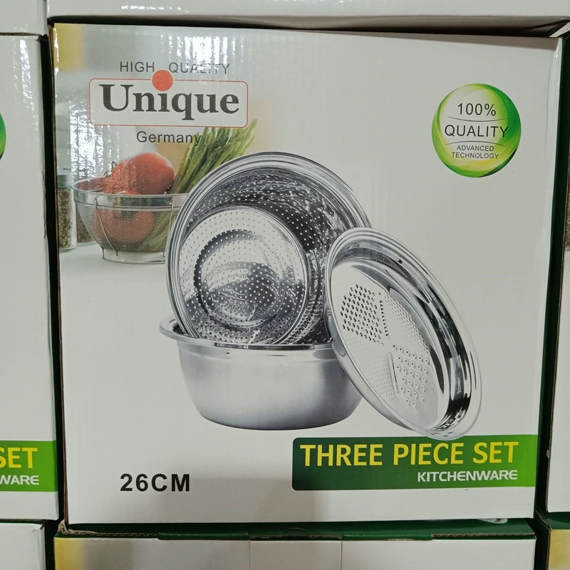 ✅️ست سه تکه آبکش، لگن و رنده استیل یونیک