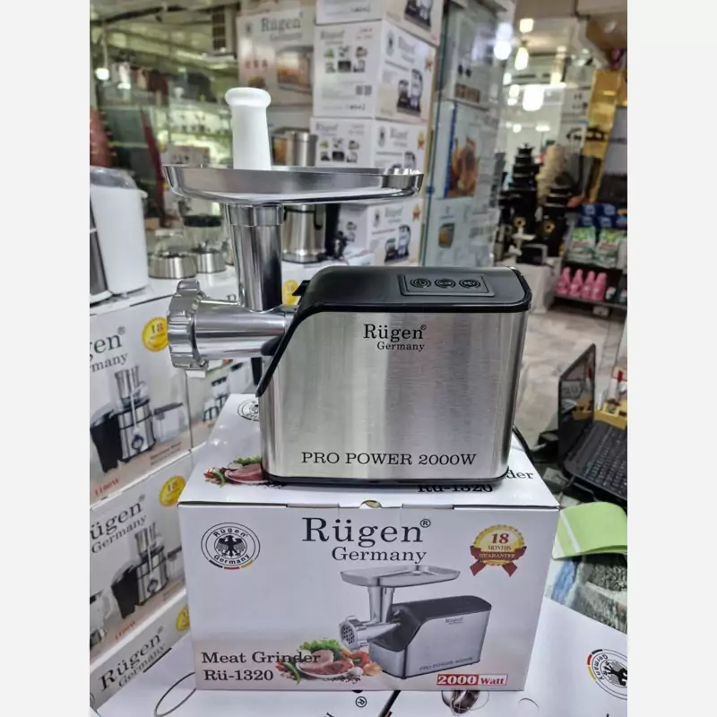 چرخ گوشت روگن آلمان مدل RU1320 توان مصرفی: 2000 وات میزان خروجی : 1700گرم در دقیقه جنس تیغه ها : استیل ضد زنگ سوسیس ساز و کبه ساز : دارد تعداد سرعت : 2 سرعته چرخش معکوس : دارد رنگنبدی: سیلور